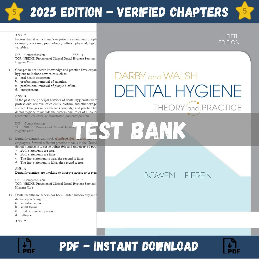 Test bank – Darby and Walsh Dental Hygiene 5th Edition (Jennifer A Pieren, 2019)